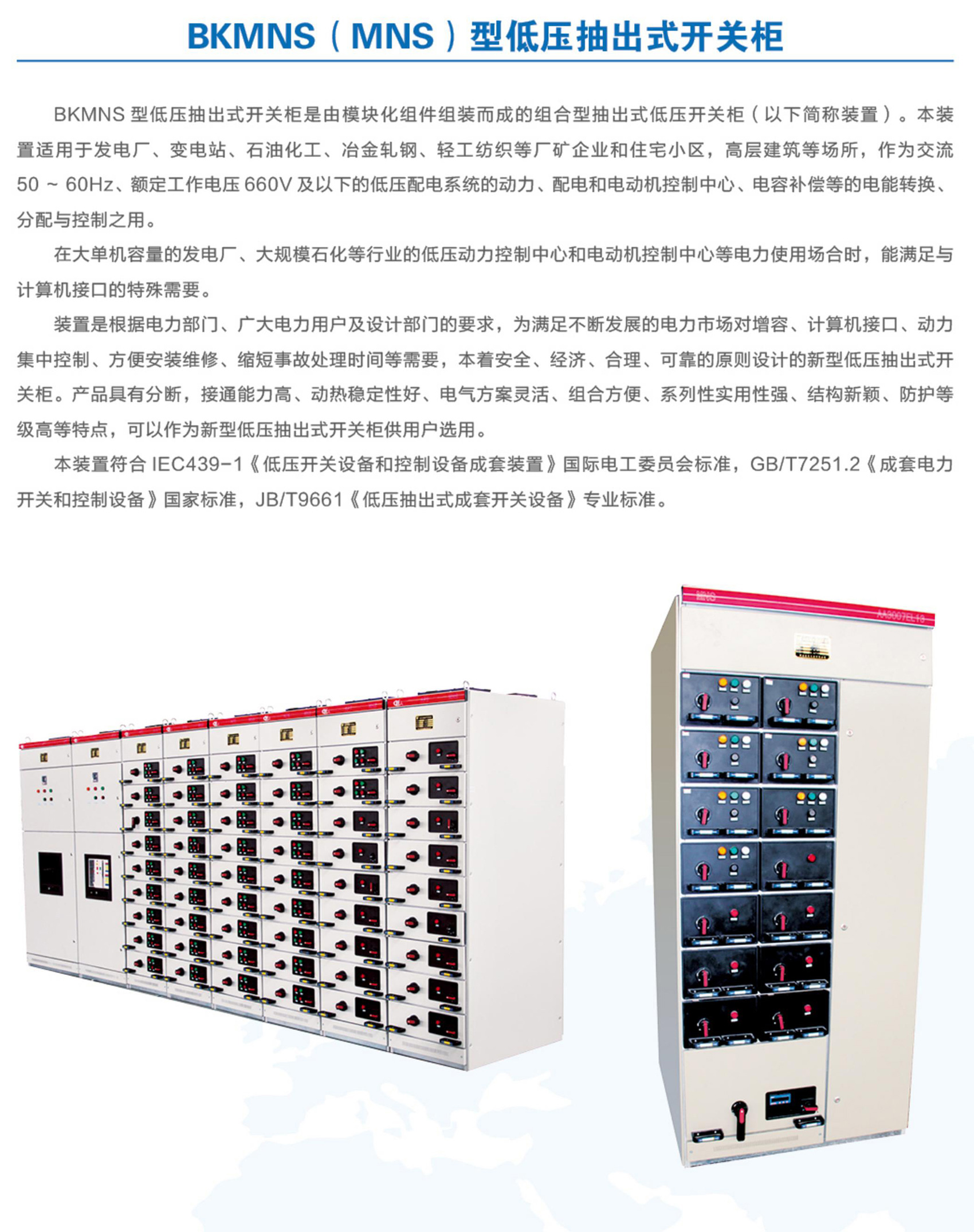 BKMNS 型高壓抽出式開關柜是由模塊化組件組裝而成的組合型抽出式高壓開關柜(以下簡稱裝配)。本裝配合用于發電廠、變電站、煤油化工、冶金軋鋼、輕工紡織等廠礦企業和室第小區,高層修建等場所,作為交換50~60Hz、額外任務電壓660V及以下的高壓配電體系的能源、配電和電念頭節制中間、電容彌補等的電能轉換、分派與節制之用。在大單機容量的發電廠、大范圍石化等行業的高壓能源節制中間和電念頭節制中間等電力利用場所時,能知足與計較機接口的特別須要。裝配是按照電力部分、泛博電力用戶及設想部分的請求,為知足不時成長的電力市場對增容、計較機接口、能源集合節制、便利裝配維修、延長變亂處置時候等須要,本著寧靜、經濟、公道、靠得住的準繩設想的新型高壓抽出式開關柜。產物具備分斷,接通才能高、動熱不變性好、電氣計劃矯捷、組合便利、系列性合用性強、布局新奇、防護品級高檔特色,能夠作為新型高壓抽出式開關柜供用戶選用。