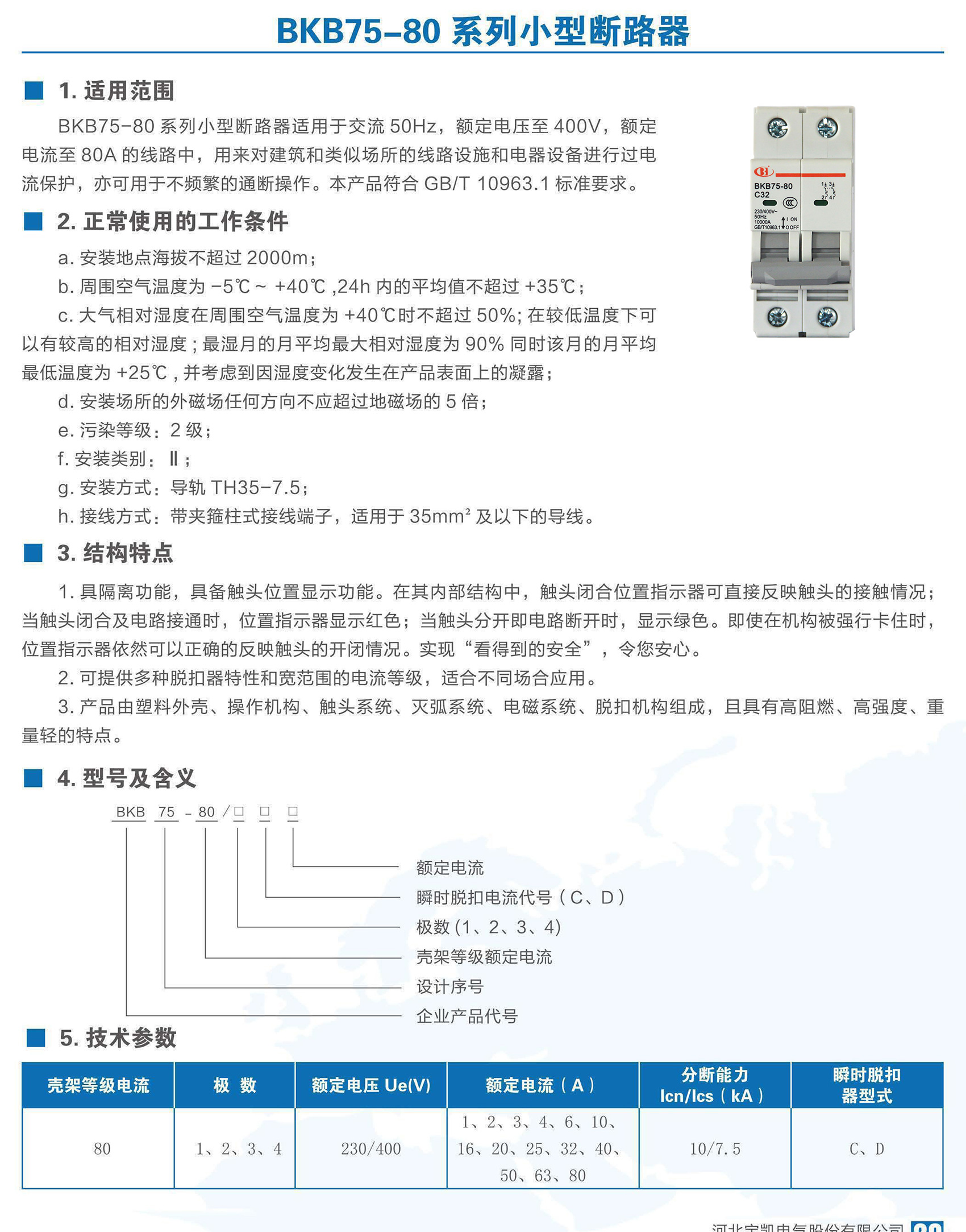 BKB75-80 系列小型斷路器